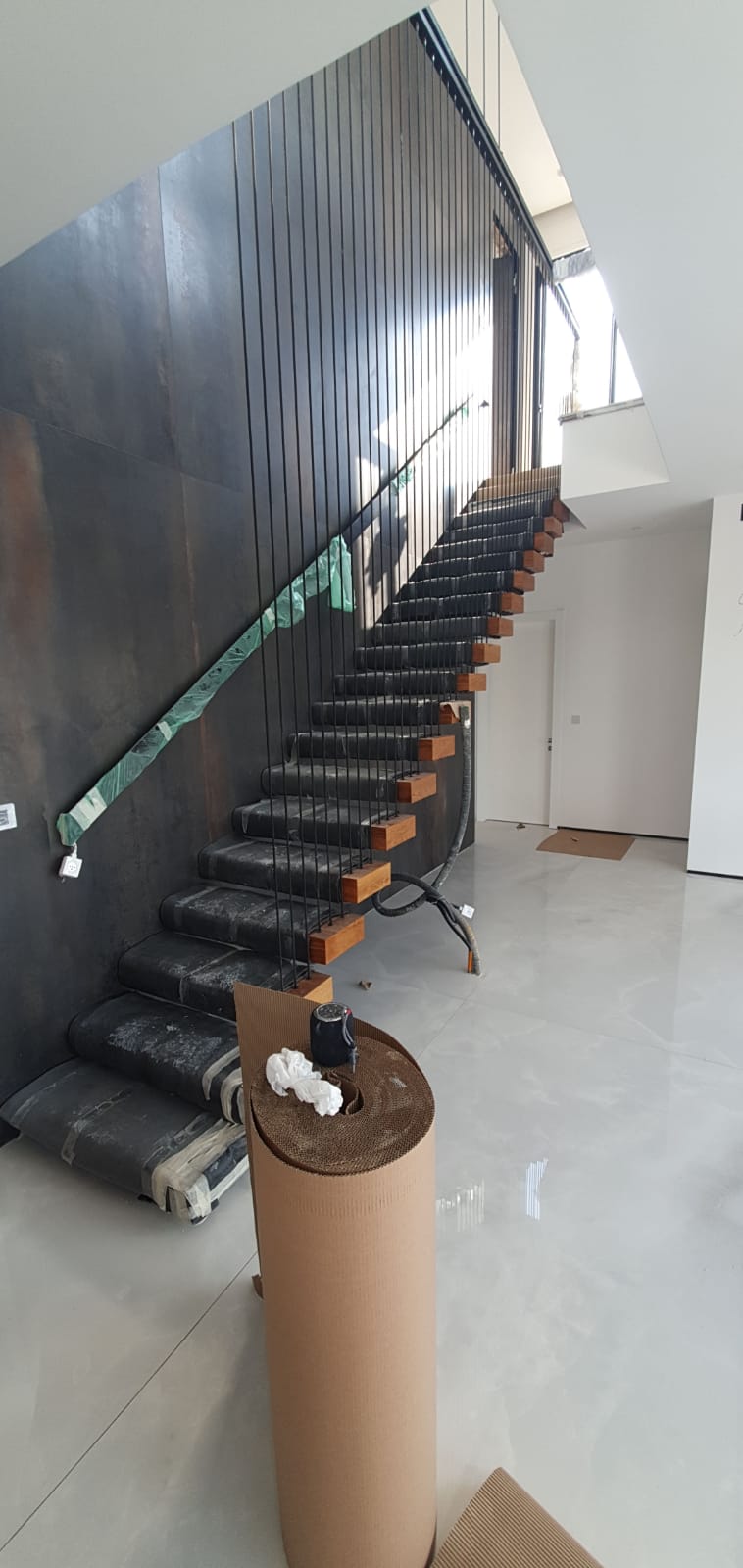 אנו מייצרים ומתקינים מעקות ברזל ומעקות למדרגות חיצוניות בדוגמאות וסוגים שונים בשילוב כבלי נירוסטה או בשילוב זכוכית.